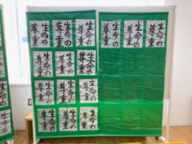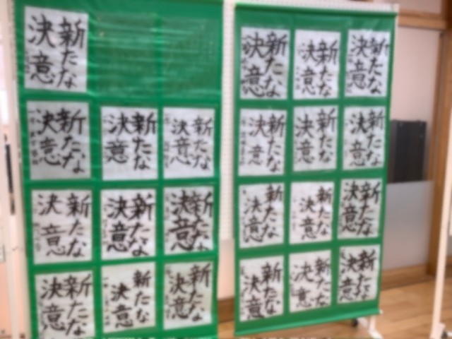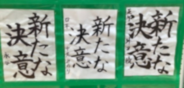 本日(23日)、週末を迎えています。3学期がスタートし、一週間あまりとなりました。校内ホールに国語科、全学年書写の時間に取り組んでいる作品が掲示されています。1年生の「新たな決意」、2年生の「生命の尊重」です。1年所属の先生方の作品も展示されています。令和8年「新たな決意」と「生命の尊重」を胸に刻んで歩んでいきます。
