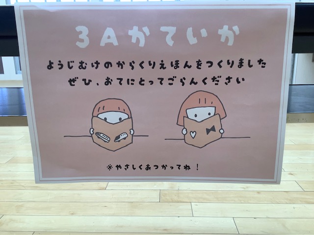 本日(26日)、昨日から明け方にかけて強風模様でしたが、穏やかな週の初めを迎えることができました。校内には、先週から各教科での日常的な学習成果物が展示されています。前回は、1・2年生の書写作品を紹介いたしました。今回は、3年生の国語科での書写と家庭科での作品を紹介します。3年生の書写作品は「友好の精神」です。また、校内のハンノキモールには、家庭科において、3年生が幼児向けに作成した「からくり絵本」が展示されています。今週金曜日には、令和8年度新入学を迎える保護者を対象にした「新入生保護者説明会」が、本校体育館を会場に行われます。日頃の本校の教育活動を、実際に感じていただくことも重要と考えています。