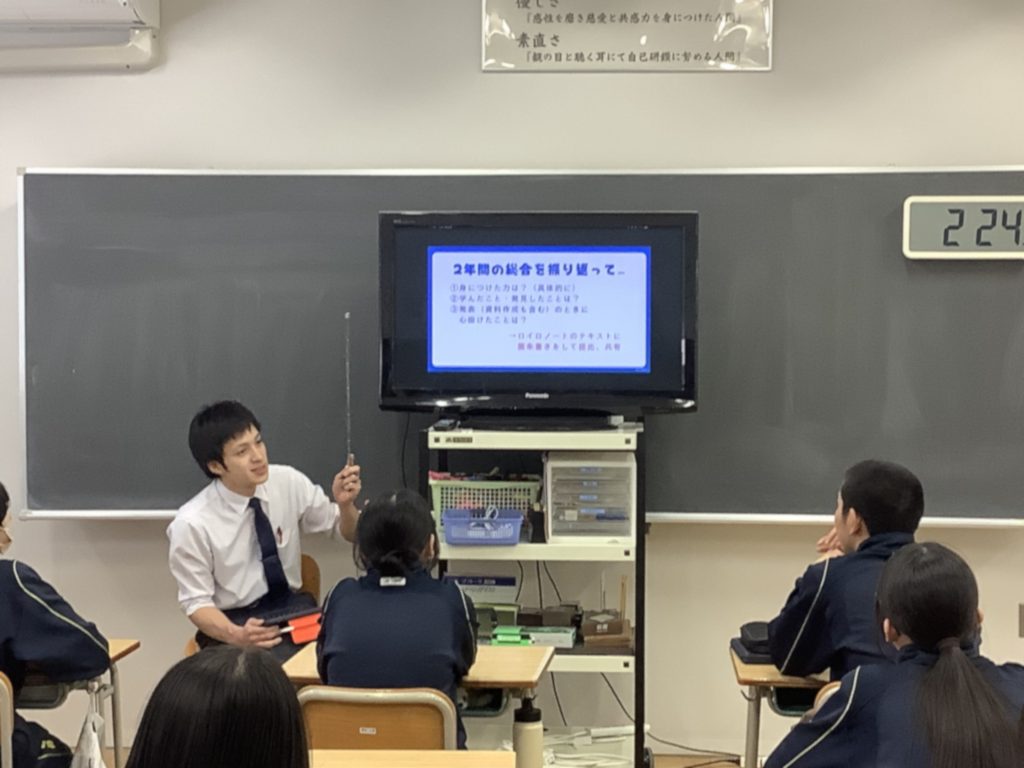 本日(27日)6校時目の2年生の「総合的な学習の時間」です。今年度の弟子屈探究の振り返りが行われています。「てしかがNow&Next」をテーマに、職業体験とリンクさせてインタビュー活動、フィールドワーク、弟子屈町に隣接する2町の現在と未来の調査活動と旅行者の視点で弟子屈にて宿泊体験する宿泊研修と盛りだくさんの実践を積み重ねてきました。次年度は、3年生として2年間の学びをもとに、修学旅行行程の中に位置づけられた弟子屈町のPR活動「てしかがAMAZING」第2弾が行われます。
