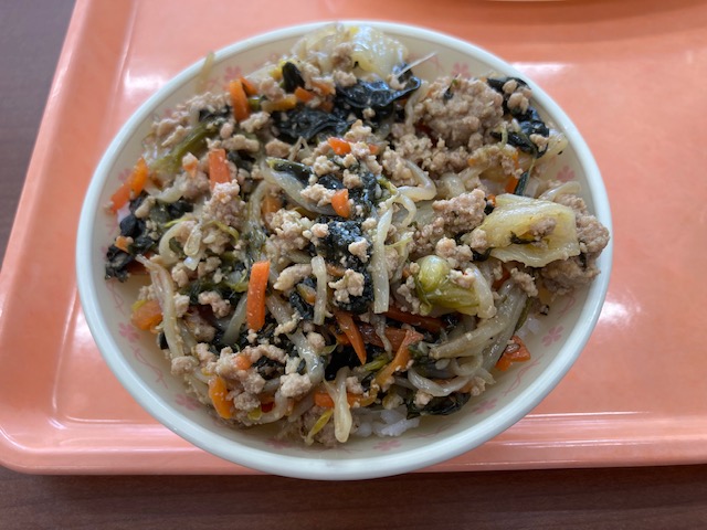 昨日、ご案内したとおり、本日(28日)の給食は、弟中生の考案メニューの献立からビビンバが登場しています。考案メニュー名「映える!韓国給食」を考慮いただき、チヂミやトックスープと、生徒の韓国給食のイメージに合わせていただきました。今回の取組は、食品ロスや体に必要な栄養素等を身近な給食を通して考える「食育」の学びとなりました。弟子屈町給食センターの皆様、ありがとうございました。