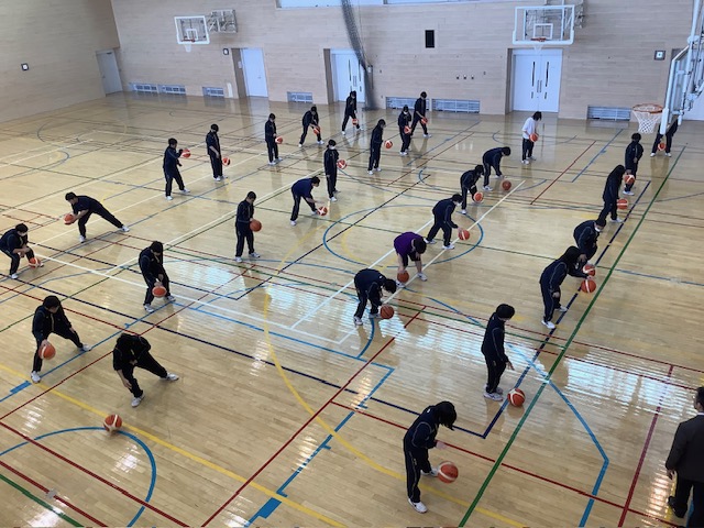 本日(23日) の「本日の一本」は、1年生の体育です。3学期より単元は、球技の「バスケットボール」です。本日のねらいとスケジュールに基づき、学習場面がテンポよく展開していきます。