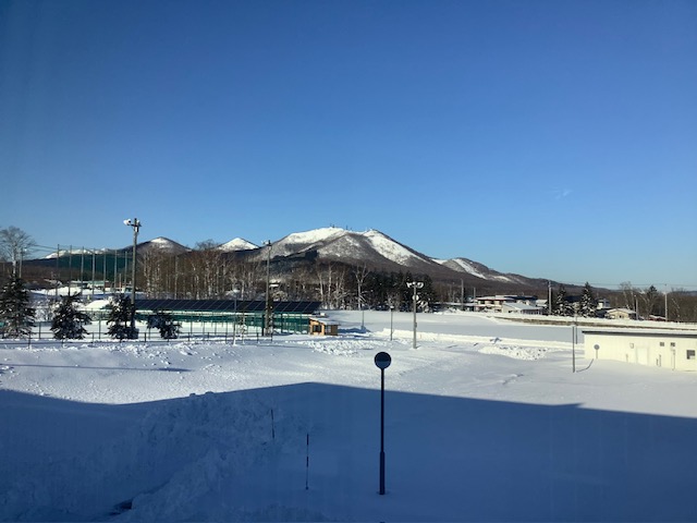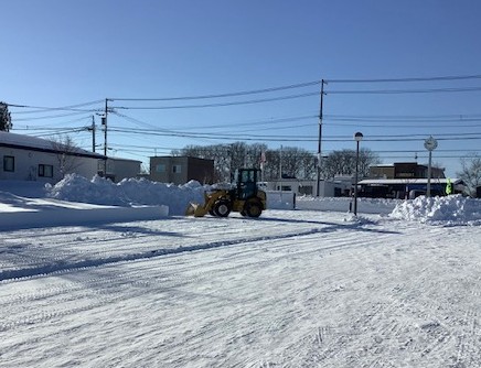本日(17日)、2日前の荒天から一転、澄み切った青空のもと、無事、学校が再開され教育活動が営まれています。広い校舎前の「テシカ広場」の除雪のため、役場から借用した重機により除雪作業が行われています。ようやく本日中には、本校敷地内の除雪が完了の見込みです。