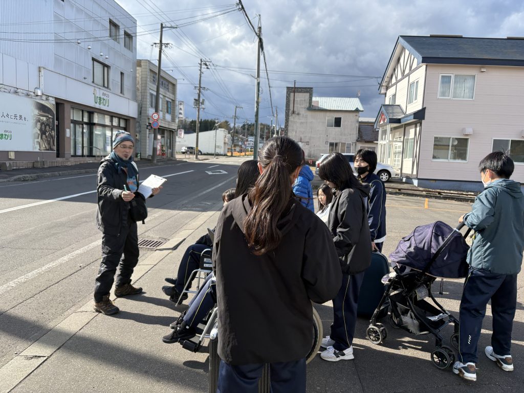 本日(23日)午前中、1学年の総合的な学習の時間として「ぶらり町歩き」のフィールドワークを実施しました。1学年弟子屈探究「てしかが再発見」の取り組みとして弟子屈町中心部を車椅子やキャリーバッグを用いての探究活動です。弟子屈町の景観や町の状況に関して、フィールドワークからの体験と実感から今後の「13歳の提案」につなげていきます。今回参加した1年生の生徒たちは、どのような思いや改善策を抱いたのでしょうか。