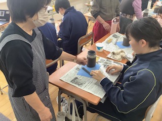 本日(19日)は、3年生での恒例事業となっています「ふるさと陶芸体験」が、弟子屈町・弟子屈町教育委員会のご支援で行われました。これは、町内の中学3年生を対象に、中学校を卒業し、弟子屈町を一時離れたとしても「ふるさと弟子屈」を、いつまでも心にとどめ、誇りを持ってこれから人生を歩んでほしいとの願いを込めて続けられているものです。陶芸体験に際しては、地元、摩周多夢窯の平出 氏をはじめ3名の講師のご協力のもと、卒業記念として 「世界に1つだけの 手づくりカップ」の制作に取り組みました。