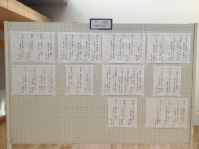 本日(13日)は、凜とした空気で美羅尾山もくっきり見えています。明後日(15日)から3学期が始まります。学校内も職員により、再開に向けハード面、ソフト面での準備が行われています。本日も開始時間から「冬休み学習スペース」の利用者と部活動での生徒が登校してきています。「冬休み学習スペース」の利用者は、限られた日数ではありましたが、利用者名簿の記入用紙が3枚目となっています。最終的には、利用のべ人数は50名近くになりそうです。 校内には、昨年末までに行った2学年国語授業「短歌の味わい」での生徒の作品が掲示されています。