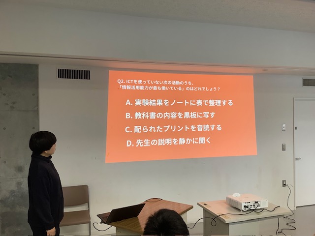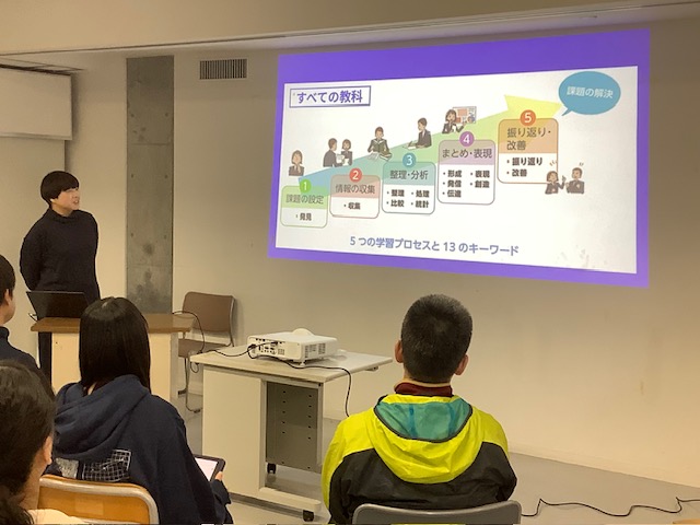 本日(14日)、明日から始まる3学期の再開を前に、教職員による校内研修が行われています。テーマは、「子どもたちの情報活用能力育成」を推進することです。本研修のベースは、昨年12月上旬、弟子屈町で開催された「令和7年度 情報教育対応教員研修全国セミナー」において学んだことを弟中教職員に広く還元することをねらいとしています。本校の担当者から説明の後、先のセミナー及び附属釧路義務教育学校後期課程セミナーにおいて学んだことを、弟中での授業に実際にあてはめ生かしてみた実践発表が、理科担当教員から行われました。