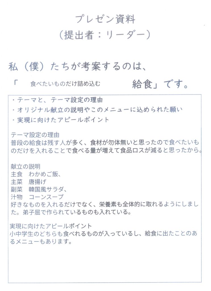 週明け19日(月)には、先月の暴風雪による臨休により実現できなかった 「弟中生が考えた給食メニュー」第二弾 が登場予定です。 給食メニュー名は、「食べたいものだけ詰め込む給食」です。 現時点では19日の天候には問題はありません。リベンジを果たし、お披露目されるのか期待が高まります。生徒の皆さん、お楽しみに。