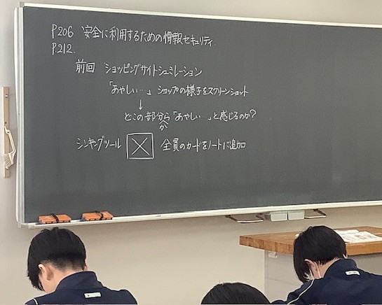 本日(26日) は、昨日の1・2年生定期テスト後のため、返却や解説・対策、3年生は、公立高校入試対策や応用・発展学習に入っている教科が多く見られてきます。弟中授業「本日の一本」は、2年生の技術です。学習内容は、「安全に利用するための情報セキュリティ」について学んでいます。生徒たちを取り巻く環境は、ネットなど大量かつ多様な情報で満ちあふれています。危険やリスクを回避するために、情報を正しく捉えしっかり判断するスキルと能力・態度の育成がますます重要となってきます。 本校でも技術科のような教科だけでなく、警察によるSNSなどの情報モラル教室の開催や適宜、学活等など学級指導を行っておりますが、ご家庭との同一歩調での教育と見守り指導は不可欠です。