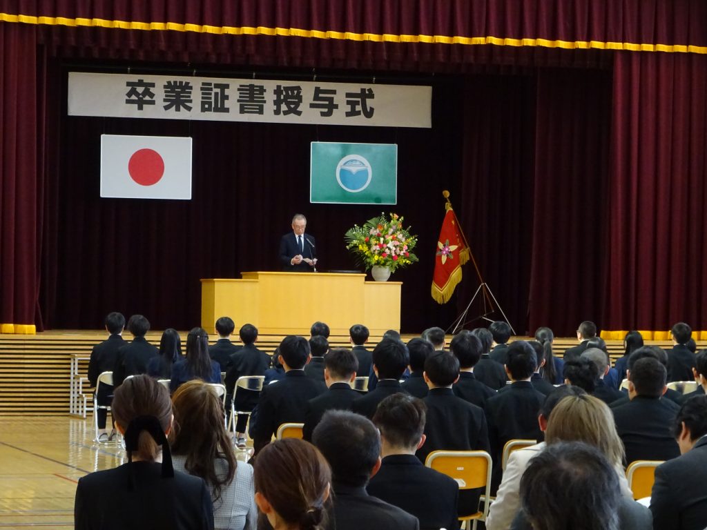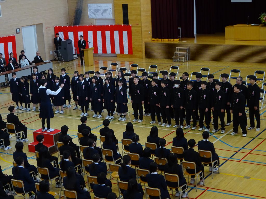 本日(13日)、心配していた天候は、風は強くも徐々に日差しが差し込む状況へと回復していく中、弟子屈中学校第79回卒業証書授与式が、多くのご来賓や保護者の皆様のご列席を賜り、無事、終了することができました。卒業生はもとより在校生の姿勢と意識の高さ、送られる側と送る側、双方の意識の相乗効果により、厳粛な中にも温かな雰囲気に満ち満ちた大変素晴らしい式となりました。卒業生の後ろ姿に、今後の活躍が期待できるとともに、在校生の姿から、次年度への更なる成長が期待されます。