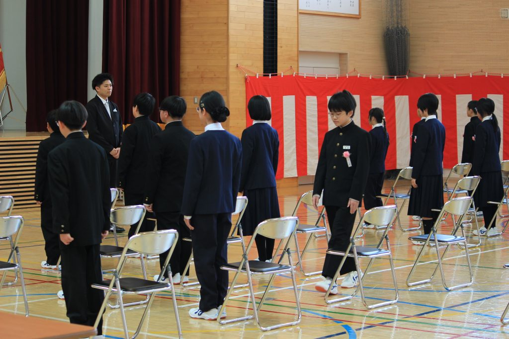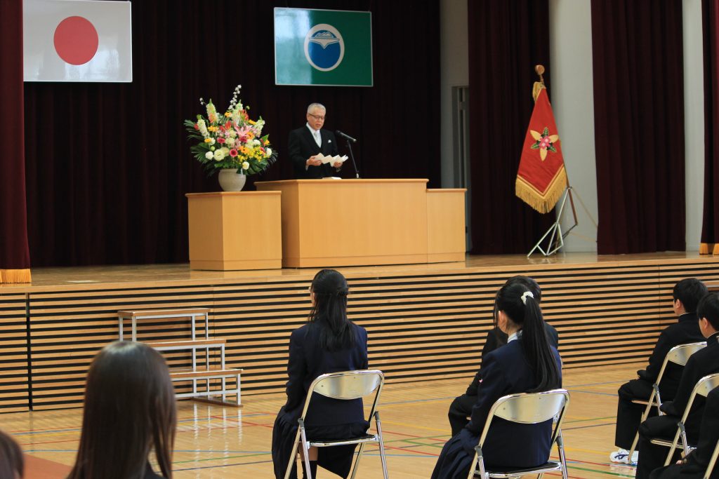 昨日(9日)は、午前中の着任式、始業式、学級活動の後、新2年・新3年生、教職員により会場準備を進め、午後から入学式が行われました。来賓および保護者の皆様のご列席を賜り、在校生の協力のおかげで大変温かな雰囲気の中で、30名の新入生を歓迎することができました。ありがとうございました。