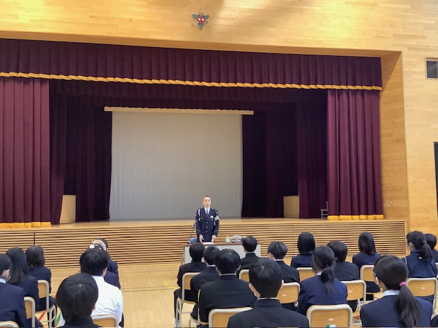 本日(21日)4校時目、弟子屈警察署の全面的なご協力を頂き、1年生対象に交通安全教室を開催いたしました。小学校から中学校生活へと生活環境や行動範囲も広くなる年齢を考慮して毎年実施しております。悲惨な交通事故の事案にも触れながら、命の大切さを考えるとともに事故に合わない、巻き込まれない、将来にわたり事故を起きなさいための考え方や行動に至るまで幅広いお話しを頂きました。講師を引き受けた頂いた警察官からも弟中1年生の話を聞く姿勢や態度に対して高い評価も頂けました。ありがとうございました。