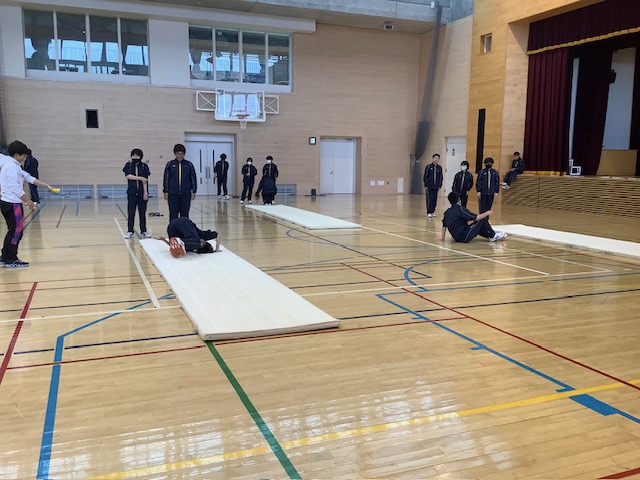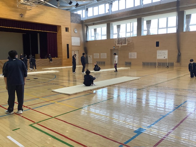 本日(22日)の「本日の一本」は、 2年生の体育です。単元は「マット運動」です。前転、後転をはじめ、開脚・伸膝技と「課題技のコツを整理する」ことをねらいとして一生懸命に取り組んでいます。