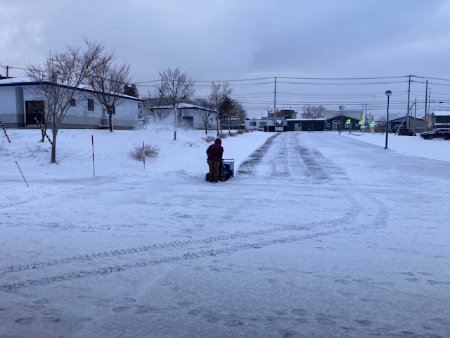 本日(4日)昨夜からの降雪でシーズン初の一面冬景色で朝を迎えました。幸い積雪は多くありませんが、学校の除雪機も職員によって初出動です。冬期間の登下校に関しての留意点について、各学級で再確認されています。今後、本格的な降雪期に入ります。幹線道路や通学路歩道の除雪のため、除雪作業が行われている際は、除雪機には近づかないようにしましょう。